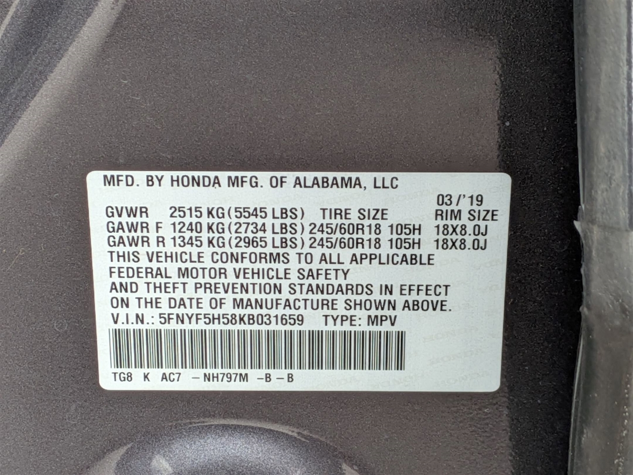 5FNYF5H58KB031659